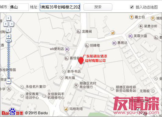 廣東順德友情漆建材有限公司,為努力創造以人為本的企業文化,為員工提供優質的工作場所,和方便客戶到訪,于2016年12月16日起,搬遷至廣東省佛山市順德區容桂鎮鳳祥南路35號創峰樓202室。
