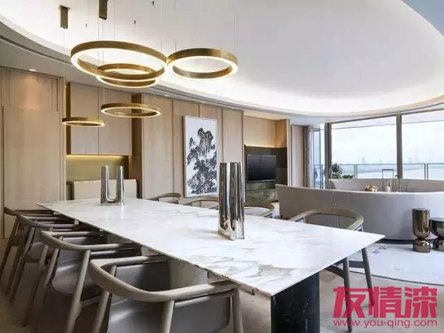 需要為直徑120厘米的桌子留出空地,同時還要為在桌子四周就餐的人留出活動空間。這個方案適合于那種大客廳,面積至少達到600*350厘米。