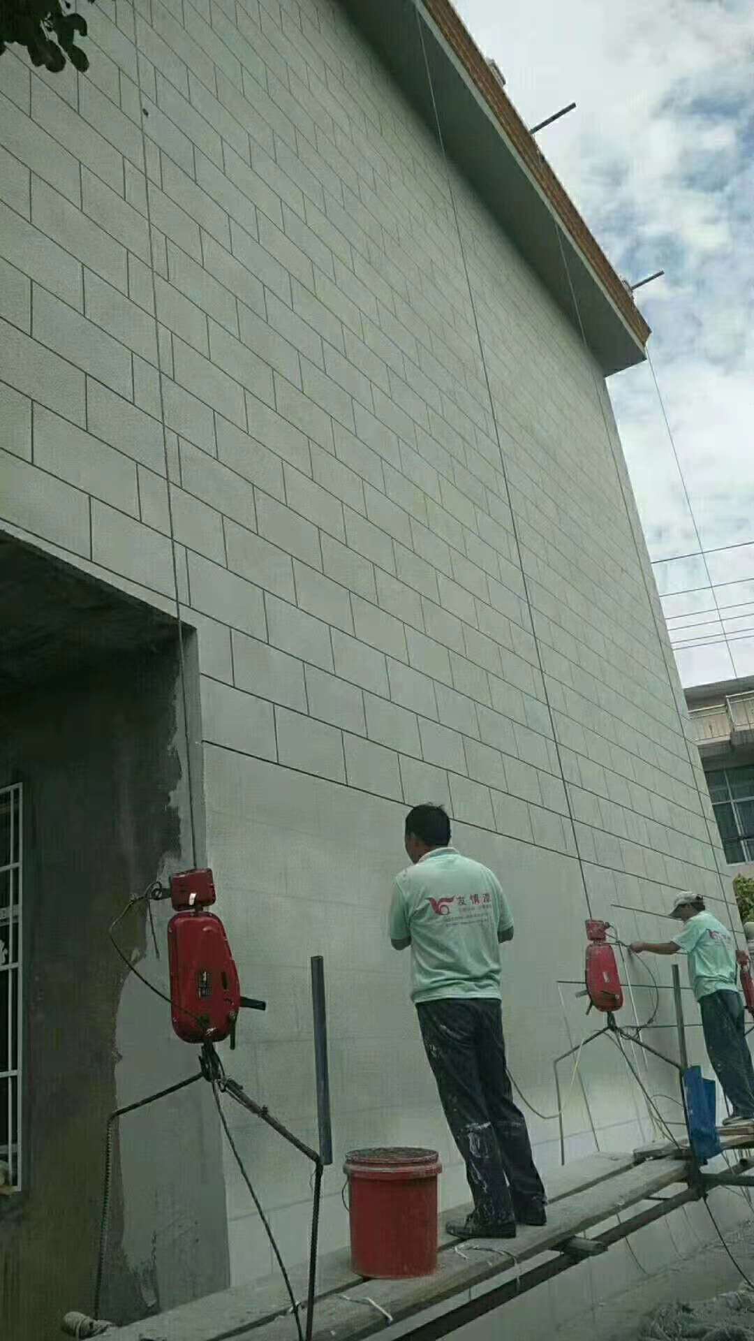 鐵抹刀、油灰刀、灰盤、電動攪拌機(jī)。作業(yè)前檢查好設(shè)備,隨身攜帶的在身上固定好,避免攀爬時掉下去。