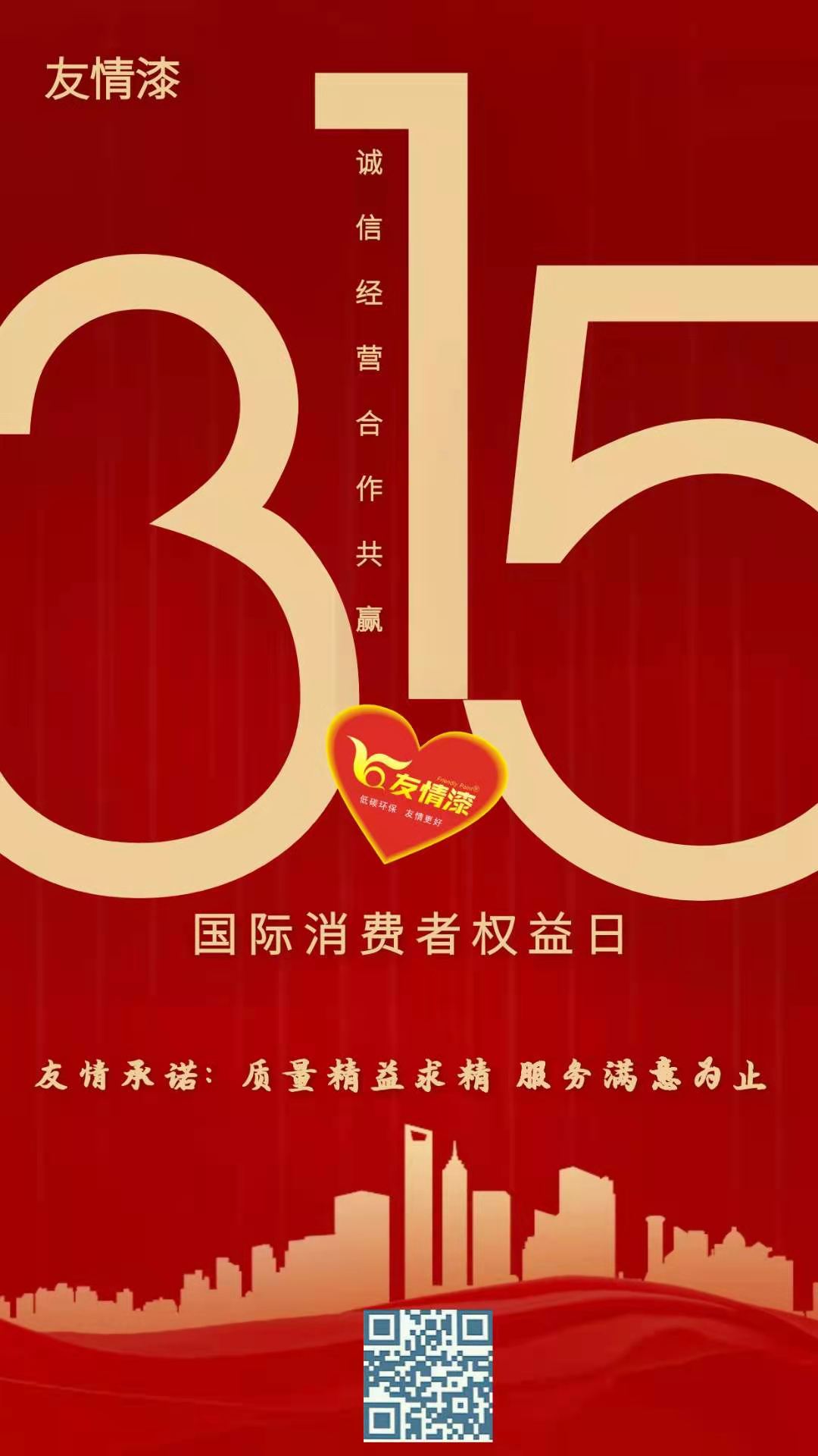 對于友情漆來說,“誠信3.15”不是一句口號,而是一份堅實的責任,一種無形的鞭策。二十多年來,友情漆堅持誠信經(jīng)營,以品質(zhì)制勝,以服務領航,在產(chǎn)品的生產(chǎn)、銷售和服務過程中,誠信不變,品質(zhì)如一,服務貼心,切實保障消費者的每一項權(quán)益。