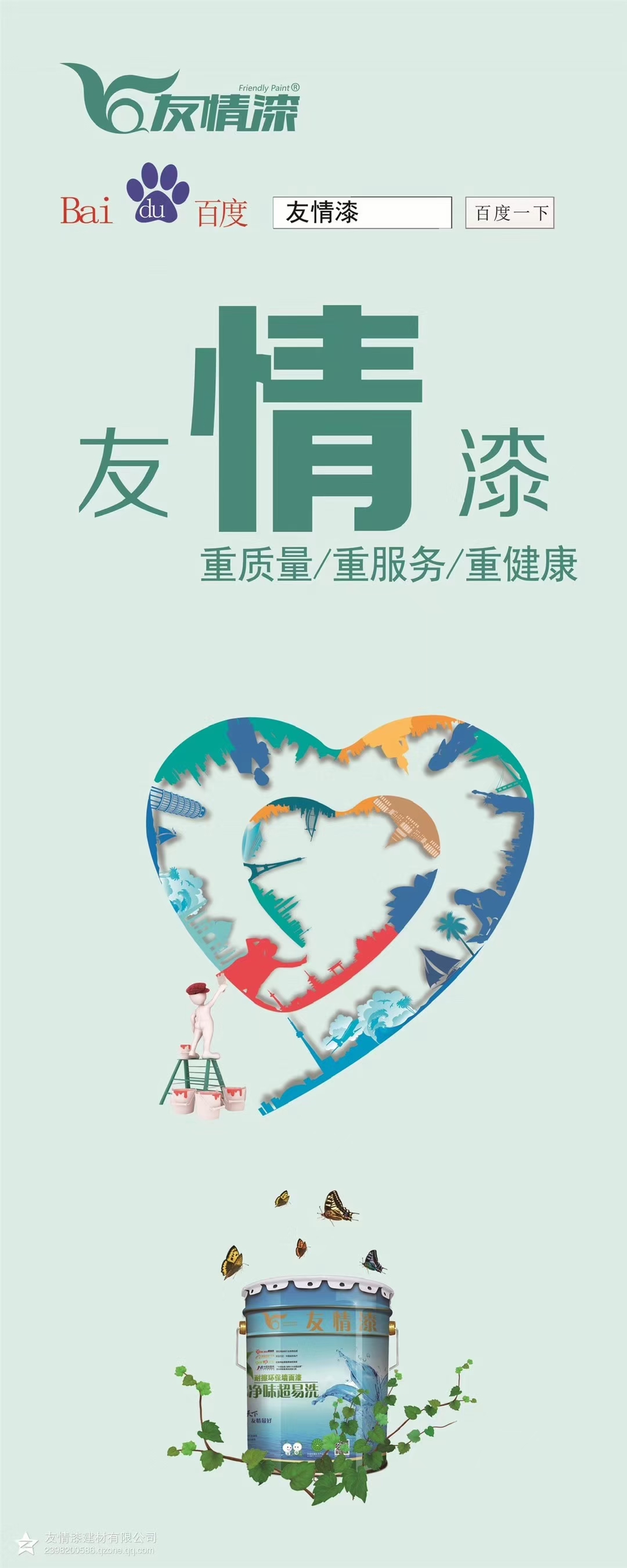 友情漆除了為廣大客戶提供優(yōu)質(zhì)內(nèi)/外墻乳膠漆、仿石漆、真石漆、巖片漆、刮砂漆、藝術漆等產(chǎn)品外,更是將服務放在了重要位置,因為友情漆懂得,對于終端消費者而言,質(zhì)量再好的產(chǎn)品,如果不能享受到優(yōu)質(zhì)的服務,就不能享受到產(chǎn)品背后的價值。